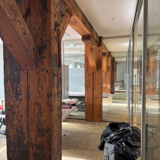 Hierzu werden derzeit in allen Räumen dieser Etagen die Bodenbeläge entfernt, der "Doppelboden" geöffnet und die alten Konvektoren der Lüftungsanlage entfernt.